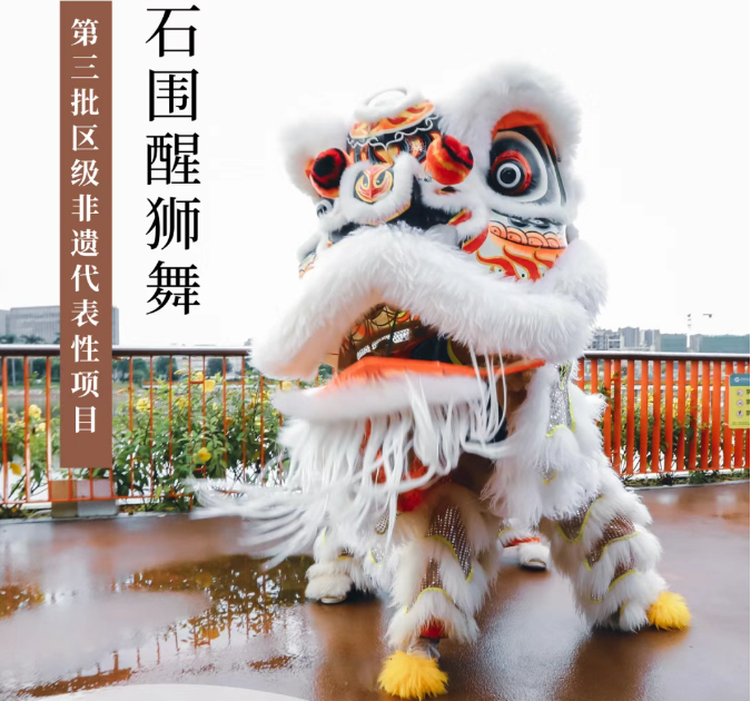 石围醒狮始于明朝中期,20世纪50年代较为盛行,至今有近400年历史,民国初期由村中爱好醒狮的村民麦太发(口译)自发传授醒狮技艺,石围醒狮作为南狮的重要流派,广泛流传于广东珠三角及广西部分地区,主要在节日喜庆时进行表演。