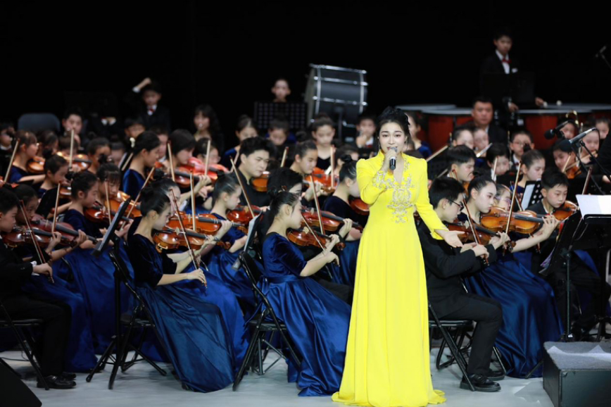 本场音乐会由东海实验小学“小脚丫”管弦乐团与深圳城市爱乐青少年交响乐团联袂呈现。演出中,青少年乐手们还与区文化馆青年女高音潘志莹老师共同深情演绎了《我的祖国》,随后《黑神话:悟空》配乐、《天空之城》等中外经典曲目接连奏响。孩子们以专注的投入、娴熟的技巧和饱满的舞台表现力,生动展示了他们的音乐素养与成长风貌,为现场近800名观众营造了沉浸式的艺术氛围。
